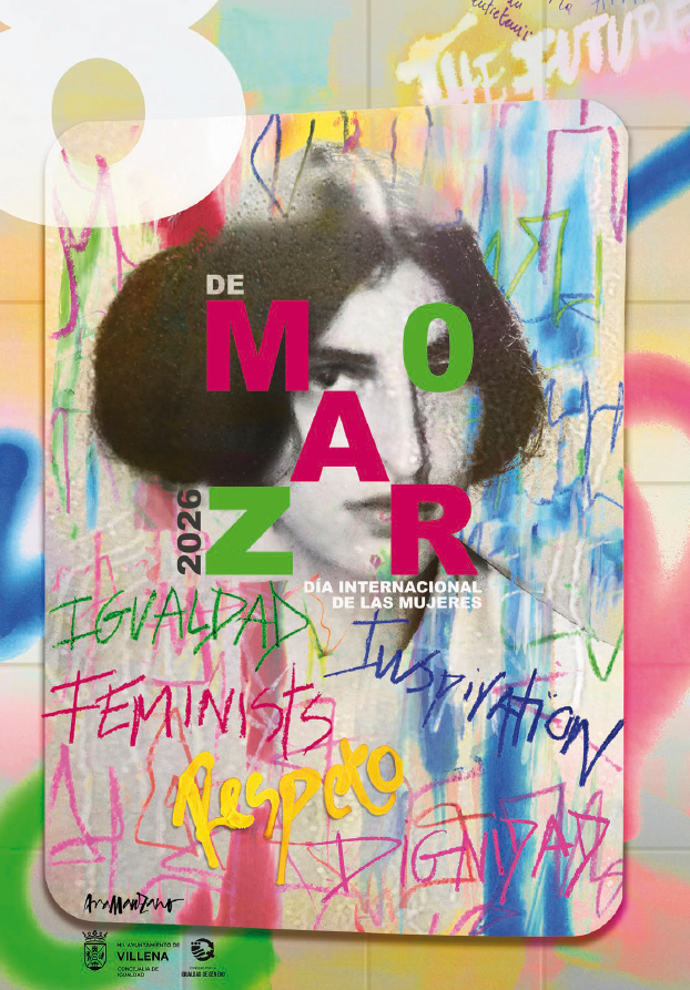 La imagen oficial del 8M 2026 en Villena es obra de la diseñadora Ana Pérez Manzano. El cartel plantea una reflexión visual entre pasado y presente a través de un retrato en blanco y negro reflejado en un espejo situado en el espacio público.