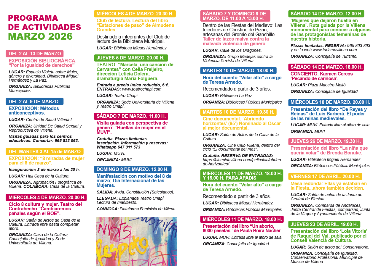 La programación arranca el 2 de marzo con la exposición bibliográfica “Por la igualdad de derechos” en las bibliotecas municipales Miguel Hernández y La Paz.