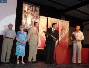 Posteriormente, el edil de Fiestas, Francisco Abellán, dio paso a la presentación de la revista, no sin antes destacar que bucear entre sus páginas es encontrarse de frente con la historia de una ciudad que vive las fiestas en primera persona. El edil felicitó a todas las personas que hacen posible que la Fiesta tenga continuidad a través del tiempo y a los artistas que año tras año plasman su visión de las fiestas en carteles y diseños, dando paso con ello a la entrega a Tomás Prats Lázaro del premio correspondiente al concurso del cartel anunciador de las Fiestas 2008, descubierto minutos antes en la Plaza de Santiago de manos de las Regidoras 2008, Mª Elena Conejero y Mariola Calvo.