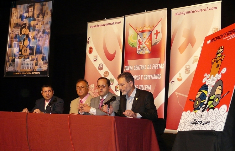 Finalmente, tomaron la palabra el Presidente de la JCF, Manuel Muñoz, y el primer Teniente de Alcalde, Jesús Martínez, quien excusó la ausencia de la alcaldesa. Los máximos responsables festeros y políticos reiteraron el agradecimiento a todas las personas, empresas e instituciones que han hecho posible que el Día 4 que fuera haya podido cumplir 25 años y aprovecharon la ocasión para desear a todos los villeneros y visitantes unas felices Fiestas 2008.