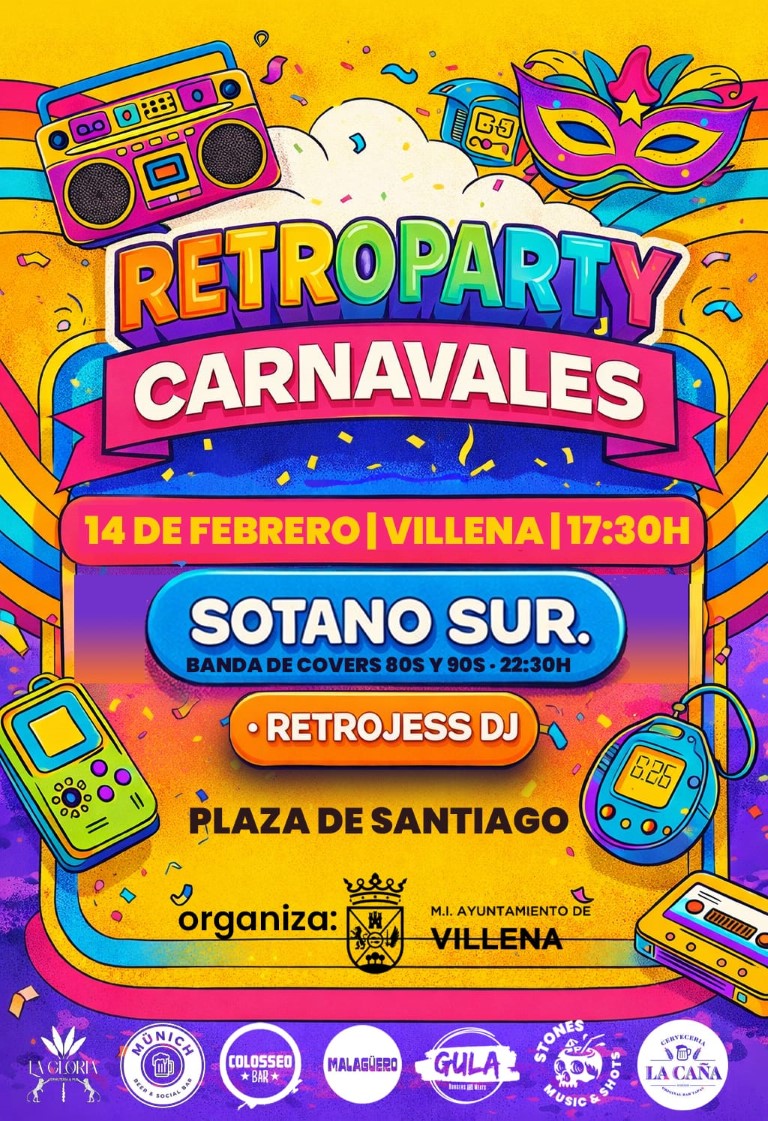 Ese mismo día, desde las 17:30 horas, la Plaza de Santiago será el escenario de la Retroparty Carnavales, con la música de Retrojess DJ y la actuación de la orquesta Sótano Sur, que ofrecerá un tributo a la edad de oro del pop español a partir de las 22:30 horas. Durante la jornada se repartirán regalos y se premiarán los mejores disfraces.