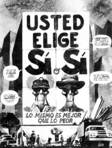 No abandonamos el sur del Nuevo Continente si recordamos que hace apenas unos meses también se recuperaban en un solo volumen los cuatro libros que conforman Perramus, magistral narración gráfica creada a cuatro manos por el guionista y novelista Juan Sasturain y el dibujante Alberto Breccia: un gran fresco de América del Sur mostrado como una realidad alternativa donde se puede viajar a la Santa María de Juan Carlos Onetti y en la que Jorge Luis Borges, convertido en uno de los cuatro personajes principales del relato, sí ganó el Premio Nobel que sin duda merecía... aunque aquí lo hiciese especialmente por un libro de cuentos titulado Fricciones (sic). No son los únicos referentes que los autores rescatan de nuestro mundo: el cuarto y último álbum de la serie se titula Diente por diente porque es una alocada peripecia en la que los protagonistas van en pos de la dentadura perdida de Carlos Gardel; y también se dejan caer a lo largo de la obra Gabriel García Márquez (este sí, Nobel en nuestra realidad corriente y moliente) o un expeditivo Frank Sinatra convertido en el propietario de un lujoso casino de Las Vegas. Materializada como un grito de rebelión contra la represión política de la dictadura en Argentina -según confesase el propio autor de Mort Cinder y El Eternauta 1969-, Perramus es todo un viaje, físico y psicológico, por la historia homérica y conspiranoica de América Latina en el siglo XX que hace gala de algunos de los mejores diálogos de la historieta hispanoamericana reciente y del siempre expresivo, y aquí algo más naturalista que de costumbre, estilo gráfico del maestro y patriarca de una estirpe de artistas irrepetible: los Breccia.