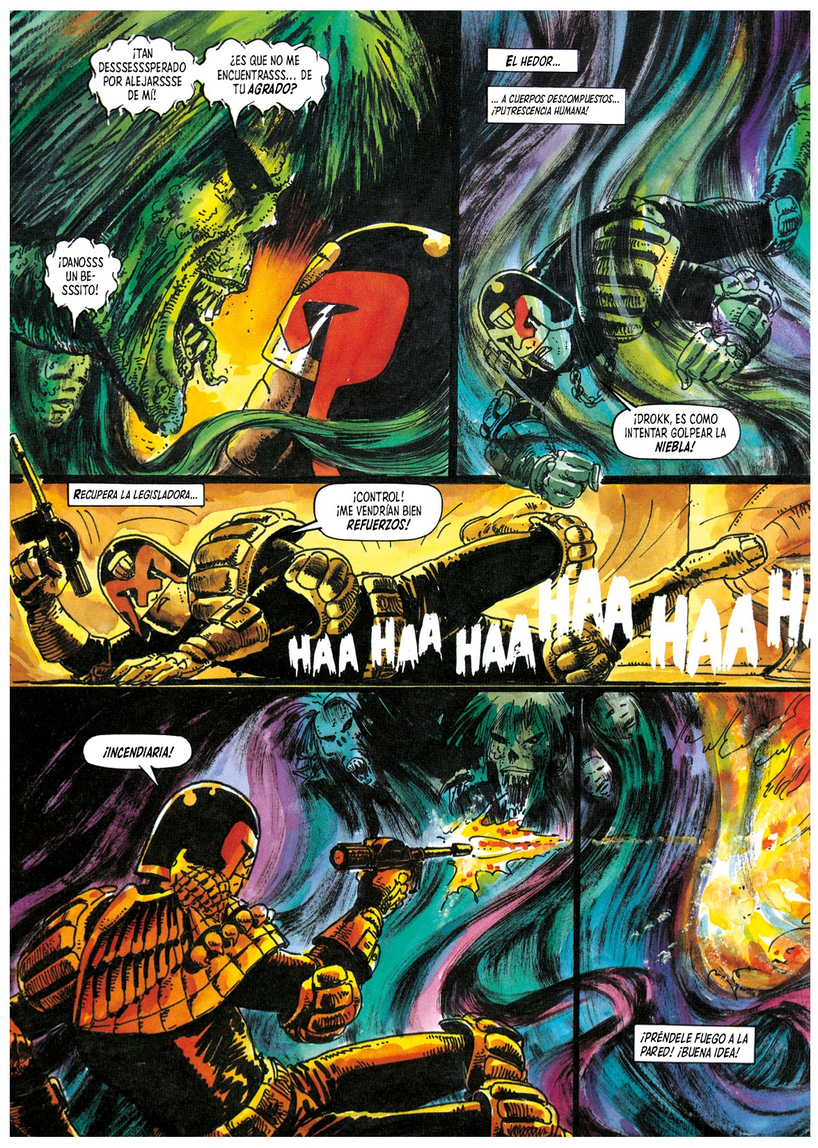 Seguimos sin abandonar el género de la ciencia ficción si nos hacemos eco de la recuperación de una mítica historia, inédita aquí en su totalidad, del carismático juez de Mega-City Uno: en Juez Dredd. Necrópolis, los creadores del personaje -el guionista John Wagner (The Last American) y el dibujante español, ya desaparecido, Carlos Ezquerra (Solo un peregrino)- ofrecieron un relato extenso serializado en el mítico magazine 2000 AD que hizo historia a comienzos de los noventa, pero que no pudimos leer aquí en su día. Ahora, en la línea que recupera títulos de aquella mítica cabecera podemos disfrutar por fin de este blockbuster en viñetas compuesto por el también inédito “Cuento del Hombre Muerto” y la propia saga que da título al volumen y a la que el anterior sirve como prólogo. En sus páginas, el lector será testigo de cómo un decepcionado Joe Dredd decide emprender la Larga Marcha a la Tierra Maldita, dejando a Mega-City Uno a merced de unos Jueces Oscuros que convertirán a la gran ciudad en una enorme necrópolis con millones de muertos en sus calles. De esta obra, además de que el libreto del guionista de Perro de Estroncio dosifica la información con gran oficio y hace de su lectura un gran entretenimiento, cabe destacar sobre todo el espectacular dibujo del malogrado artista zaragozano. En resumidas cuentas: indispensable no ya para los seguidores del personaje, sino también para cualquier buen aficionado al género.