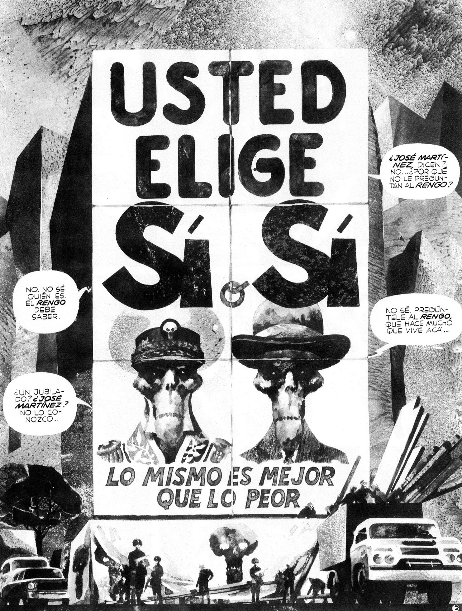 No abandonamos el sur del Nuevo Continente si recordamos que hace apenas unos meses también se recuperaban en un solo volumen los cuatro libros que conforman Perramus, magistral narración gráfica creada a cuatro manos por el guionista y novelista Juan Sasturain y el dibujante Alberto Breccia: un gran fresco de América del Sur mostrado como una realidad alternativa donde se puede viajar a la Santa María de Juan Carlos Onetti y en la que Jorge Luis Borges, convertido en uno de los cuatro personajes principales del relato, sí ganó el Premio Nobel que sin duda merecía... aunque aquí lo hiciese especialmente por un libro de cuentos titulado Fricciones (sic). No son los únicos referentes que los autores rescatan de nuestro mundo: el cuarto y último álbum de la serie se titula Diente por diente porque es una alocada peripecia en la que los protagonistas van en pos de la dentadura perdida de Carlos Gardel; y también se dejan caer a lo largo de la obra Gabriel García Márquez (este sí, Nobel en nuestra realidad corriente y moliente) o un expeditivo Frank Sinatra convertido en el propietario de un lujoso casino de Las Vegas. Materializada como un grito de rebelión contra la represión política de la dictadura en Argentina -según confesase el propio autor de Mort Cinder y El Eternauta 1969-, Perramus es todo un viaje, físico y psicológico, por la historia homérica y conspiranoica de América Latina en el siglo XX que hace gala de algunos de los mejores diálogos de la historieta hispanoamericana reciente y del siempre expresivo, y aquí algo más naturalista que de costumbre, estilo gráfico del maestro y patriarca de una estirpe de artistas irrepetible: los Breccia.
