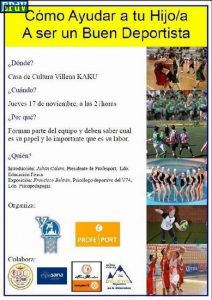 El próximo jueves 17 de noviembre, a las 21 horas y bajo el nombre ¿Cómo ayudar a tu hijo/a a ser un buen deportista? tendrá lugar esta charla en la Casa de la Cultura de Villena en la que se intentará concienciar a los padres de la importancia de su labor y su papel como padres de deportistas.