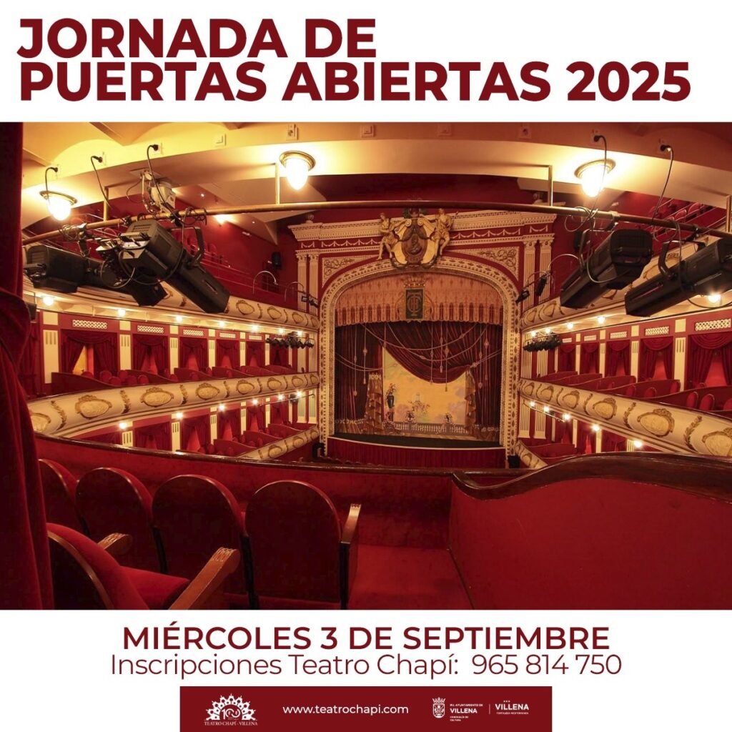 Como es tradición, las Fiestas de Moros y Cristianos tienen su comienzo el día 4 de septiembre con el Concierto Extraordinario que ofrecerá la Banda Municipal de Música de Villena a las 19’00 h. en el Teatro Chapí. Previamente, el miércoles 3 de septiembre el Teatro llevará a cabo una Jornada de Puertas Abiertas en tres turnos desde las 11’30 AM previa inscripción gratuita en el teléfono del propio Teatro.