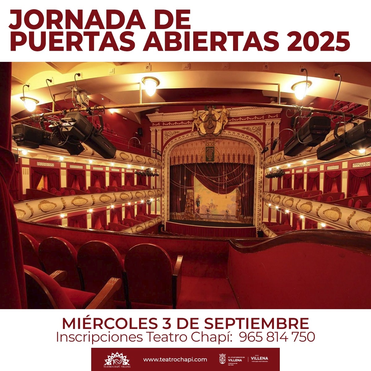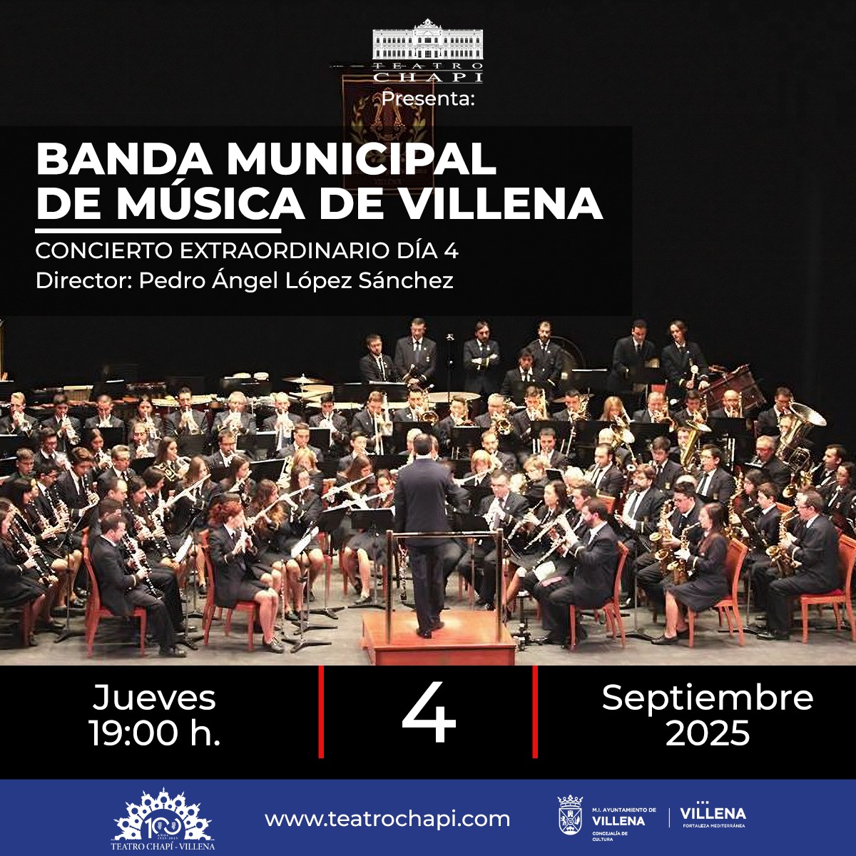 Como es tradición, las Fiestas de Moros y Cristianos tienen su comienzo el día 4 de septiembre con el Concierto Extraordinario que ofrecerá la Banda Municipal de Música de Villena a las 19’00 h. en el Teatro Chapí. Previamente, el miércoles 3 de septiembre el Teatro llevará a cabo una Jornada de Puertas Abiertas en tres turnos desde las 11’30 AM previa inscripción gratuita en el teléfono del propio Teatro.