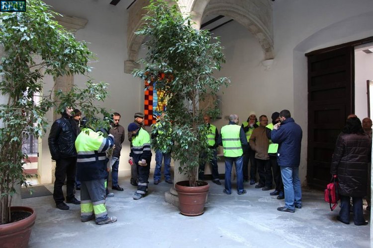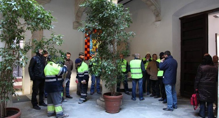 Los trabajadores municipales se han reunido una semana más en el patio del Ayuntamiento a la hora del almuerzo para pedir al gobierno municipal que aplique el fallo de la sentencia judicial que se conoció hace unas semanas. UGT había denunciado que durante el anterior mandato se aprobó la catalogación de los puestos de trabajo sin incluir el aumento en el nivel laboral que le correspondía a varios colectivos de trabajadores municipales.