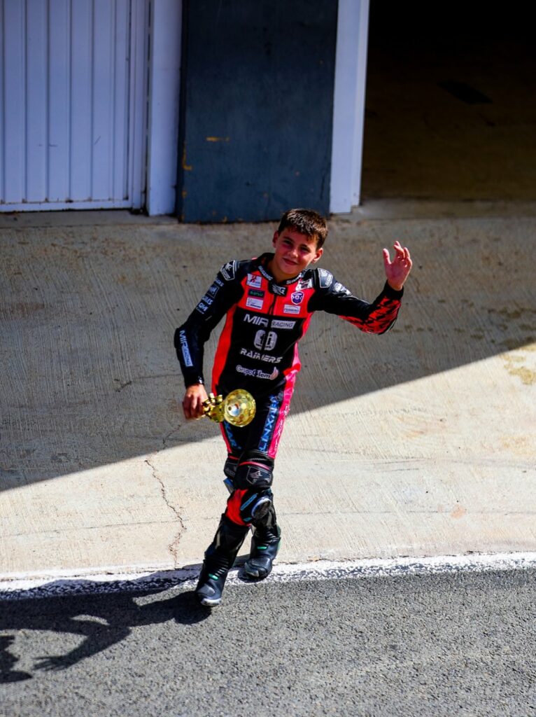 A las 16:00 del domingo levantaba su trofeo en lo más alto del podium de Cheste, para en poco más de 3 horas estar desfilando con su comparsa, el Bando Marroquí, en las fiestas patronales de su localidad, Villena. De hecho, para honrar a las Fiestas, al cruzar la línea de meta festejó la victoria imitando al gran cabo gastador de su escuadra, Héctor Soler.
