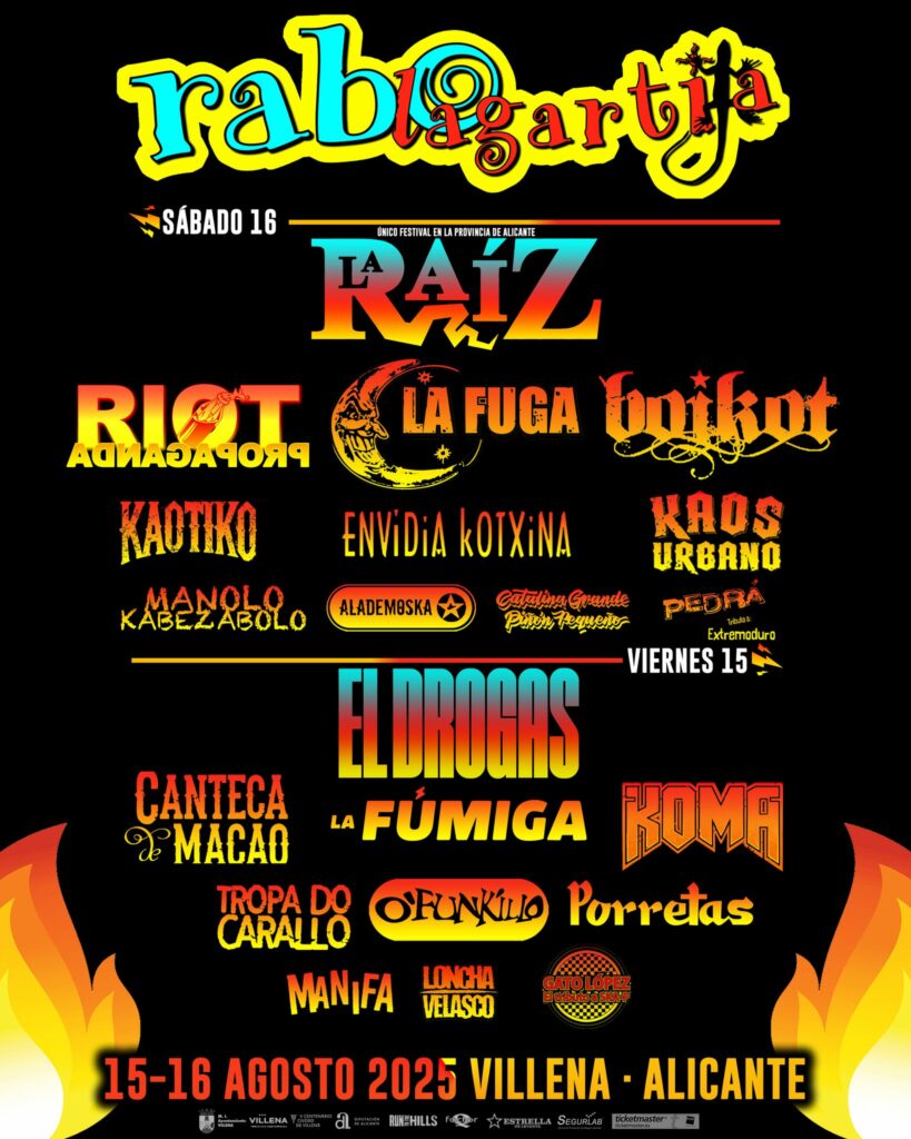 Tras la descarga de rock duro y heavy metal del Leyendas, Rabolagartija se abre al resto de estilos musicales con La Raíz como cabeza indiscutible de cartel