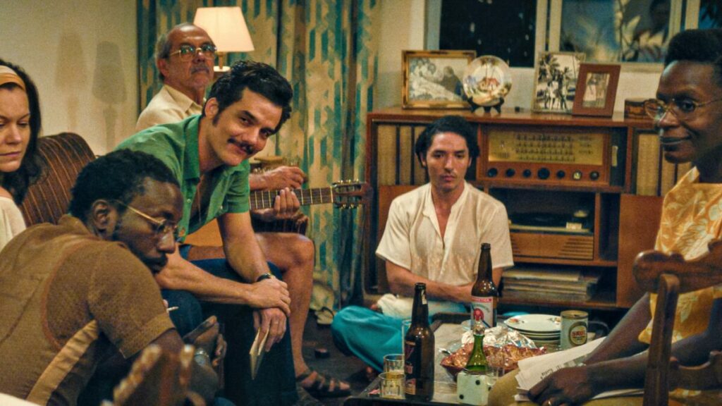 Esa es la verdadera proeza de la película, que terminas con la sensación de haber compartido un rato con un puñado de personajes de la ciudad de Recife en 1977, aunque no tengas claro qué ha pasado con cada uno de ellos exactamente. A ratos sientes su sudor pegajoso, sobre todo de los que van por la vida con la camisa abierta, y otras veces te echarías a correr por la calle al ritmo de la música setentera, que es claramente otro de los aciertos de la película, porque te coloca emocionalmente en el Brasil de la época.