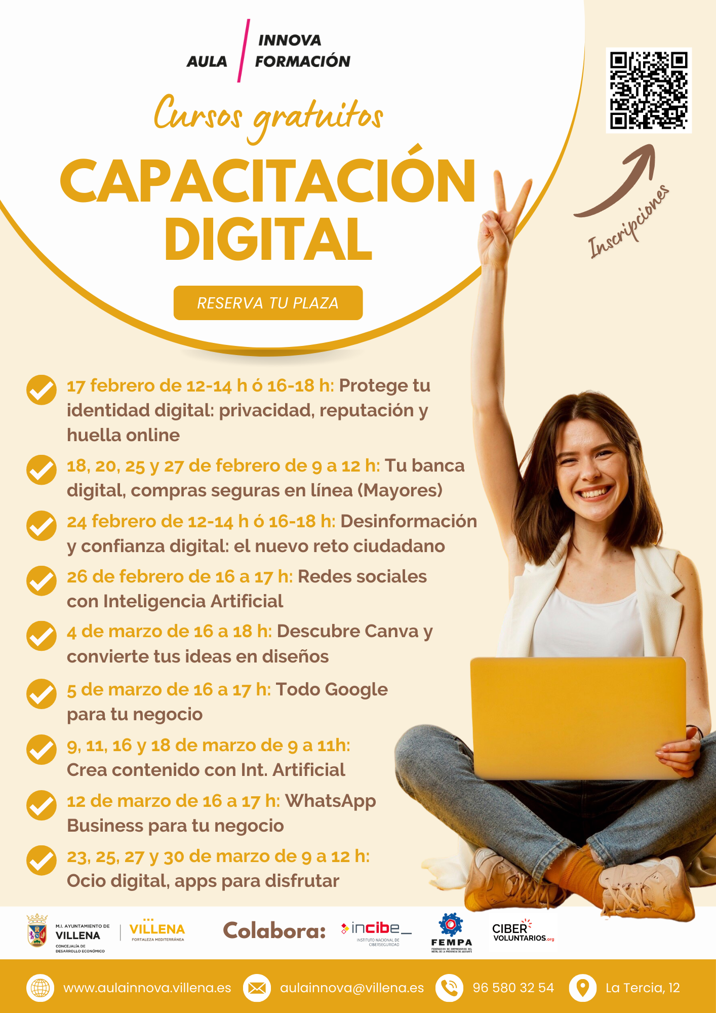 Todas las actividades son gratuitas y forman parte de la estrategia de Aula Innova Formación para reducir la brecha digital y fomentar un uso seguro, crítico y útil de la tecnología.