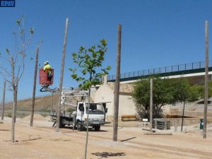 Según explicaba la edil, en esta ocasión se han plantado 50 árboles (moreras, pinos, plátanos de sombra), se ha aplanado la explanada, echando tierra y zahorra. También se han instalado fuentes, así como bancos recuperados de otras zonas, y para la Romería de la Virgen se van a colocar 8 mesas de madera. Además se ha creado una barrera con árboles y plantas alrededor de un poste de alta tensión para impedir el paso de los menores hasta dicho poste.