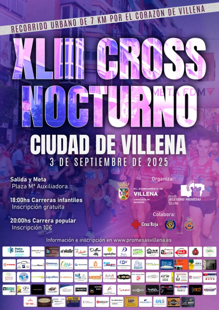 Villena celebrará el próximo 3 de septiembre la edición número 43 del Cross Nocturno, una de las citas deportivas más antiguas del calendario provincial, pues viene disputándose de forma ininterrumpida desde 1981, excepto los años de pandemia.