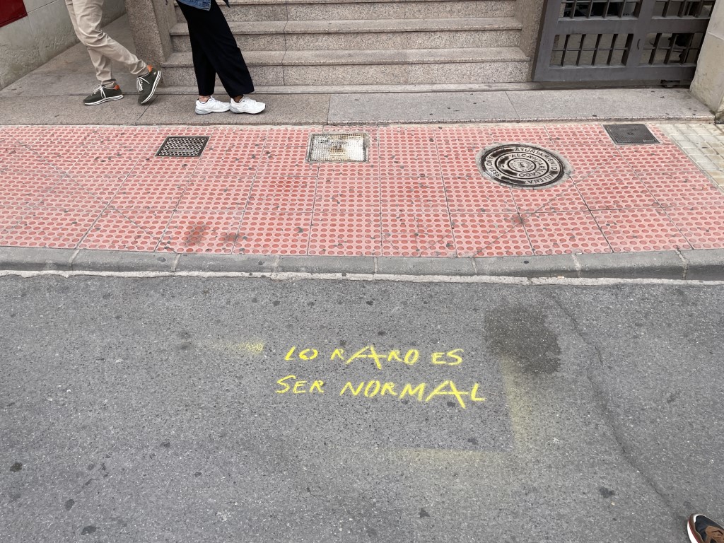 Para finalizar, usuarios de Sanamente han hecho unas pintadas sobre la calzada de Santiago con el lema “Lo raro es ser normal”.