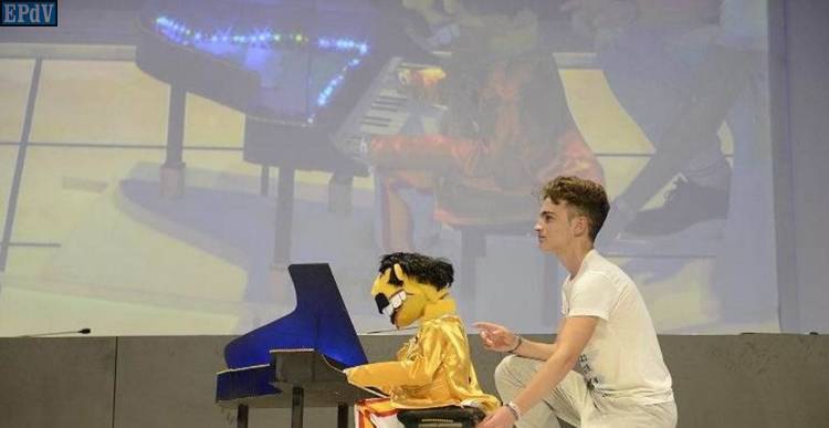 En el escenario de un auditorio repleto de alumnos, el robot construido por los alumnos de 4º de ESO, Larry Kapija, interpretó de forma impecable Bohemian Rhapsody, ayudado a los coros por sus constructores. Larry es un complejo robot en el que se han definido las posiciones de cada uno de sus 10 servomotores nota a nota.