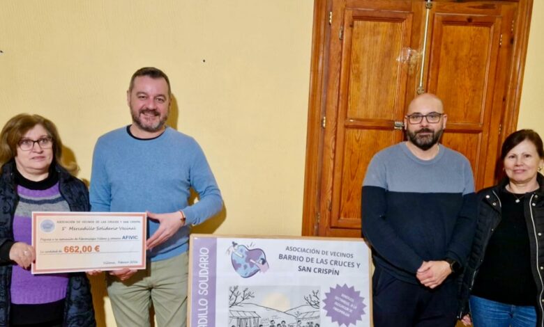 La Asociación de Fibromialgia de Villena y comarca, AFIVIC, ha recibido una donación de 662 euros procedente del mercadillo vecinal solidario celebrado recientemente en el barrio de Las Cruces.