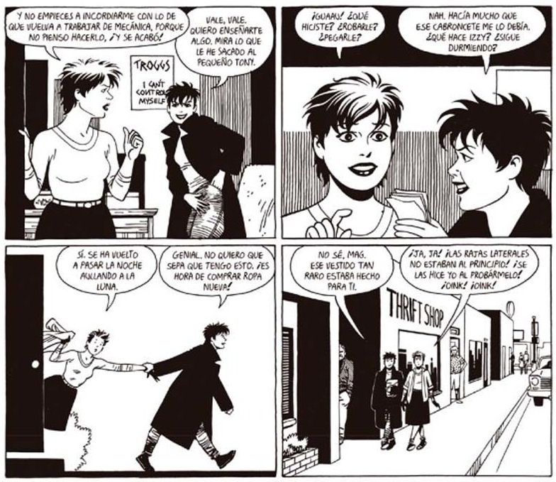 Y si usted que ha llegado hasta aquí teme perderse si se decidiese a empezar a leer esta obra monumental con el reciente Dibujo del natural, no desespere: le recomiendo que antes se haga con el primer volumen de la citada nueva edición de todo Locas de Jaime Hernandez. Siguiendo el diseño gráfico de la paralela dedicada a Palomar (que ya cuenta con dos tomos en el mercado), esta serie y su colección hermana ponen a disposición del lector interesado uno de los títulos fundamentales del cómic independiente del siglo XX y lo que llevamos del XXI. Es conveniente señalar que si su primera aproximación a Locas es mediante la lectura de este volumen, en sus primeras páginas se encontrarán con algo muy distinto de lo que la obra ha terminado siendo con el paso del tiempo: y es que en sus entregas iniciales, paridas en el momento del auge del punk rock como un nuevo movimiento antiautoritario, Jaime todavía buscaba una voz propia. Así, en estas páginas tempranas nos toparemos con una suerte de cómic de ciencia ficción medianamente pulp donde, haciendo honor a la cabecera original que compartían los tres hermanos (el tercero en discordia es Mario, el mayor, que pronto abandonó la historieta para dedicarse a otros menesteres), los cohetes tenían tanta importancia como el amor. De hecho, los elementos de la cultura popular siempre han permanecido ahí -sin ir más lejos, en Dibujo del natural aparecen una convención de cómics, aficionados al medio y cosplayers de diverso pelaje-; pero con el transcurrir de los años y de forma paralela a la maduración de su responsable no ya como artista sino también como ser humano, este fue preocupándose cada vez más por la evolución de sus protagonistas en un marco espacial y temporal más cotidiano y reconocible para construir así un mosaico de interrelaciones humanas que retratan lo mejor y lo peor de lo que significa vivir. Vaya, la más pura definición de lo que se ha venido a llamar dentro del medio un slice of life como Dios manda. En definitiva: poco más puede añadirse salvo que estamos ante una obra maestra incontestable de la historieta; no se la pierdan.