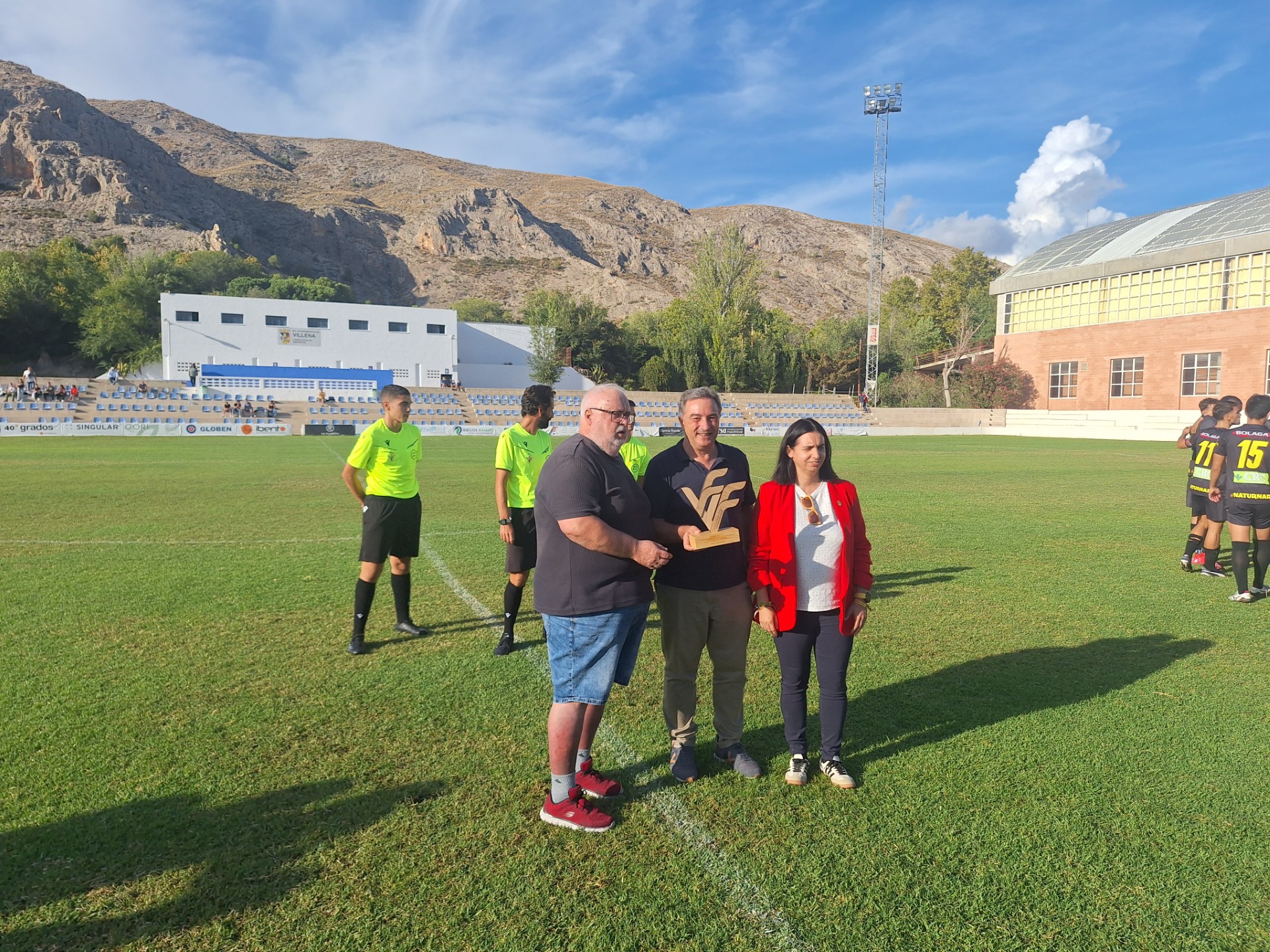 Con empate a uno finalizó el partido disputado en la Solana en la tarde del domingo. Asistió al encuentro el presidente de la Federación Valenciana de Fútbol, Salvador Gomar, que entregó un recuerdo al club conmemorando el 75 aniversario del fútbol en Villena.
