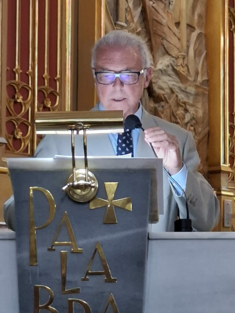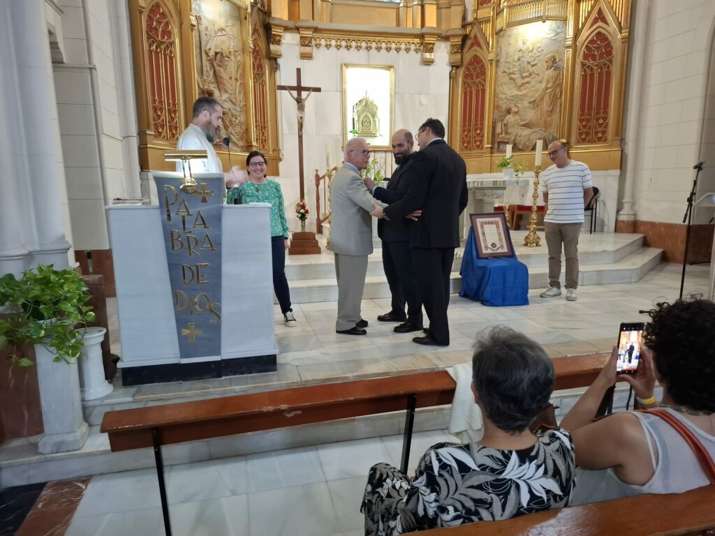 Finalmente, tras la lectura oficial de la defensa y la entrega solemne del Distintivo de Oro en el altar, Joaquín Marco Amorós tomó la palabra haciendo un verdadero homenaje a todos los Salesianos, rodeado de su familia, amigos y hermanos salesianos. A su lado estuvo también su esposa, Paqui, a quien se le reconoció su apoyo constante y discreto.