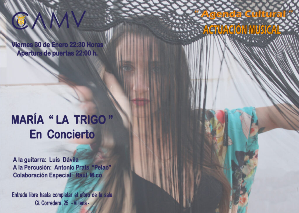Este viernes, 30 de enero, turno para el flamenco con María “la Trigo” y la colaboración especial de Raúl Micó y Antonio Prats “el pelao”