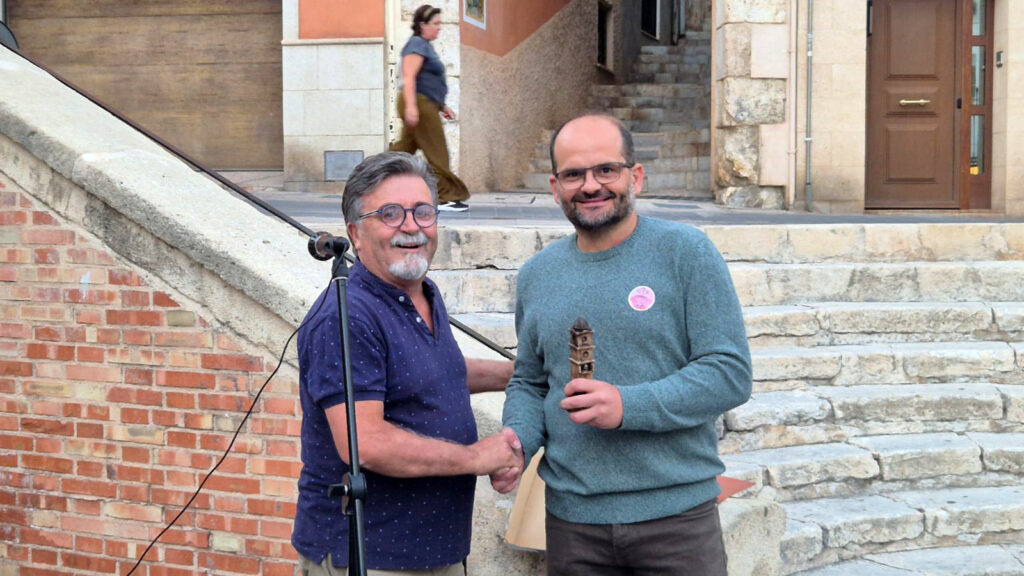 También entregó a Rafa un pequeño detalle en forma de Torre del Orejón en recuerdo de esta colaboración con el Salicornio.