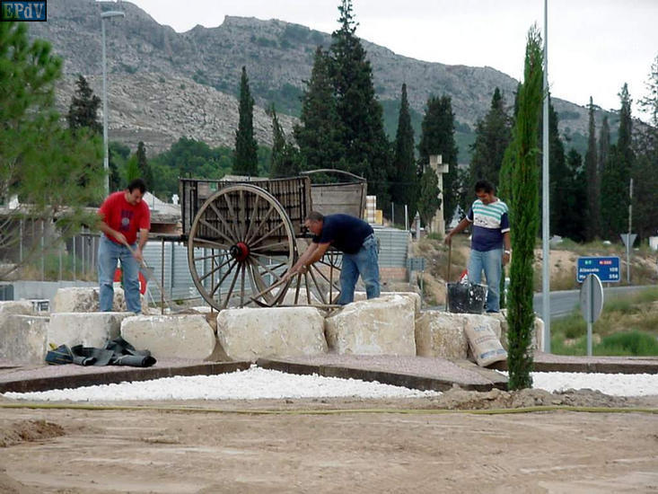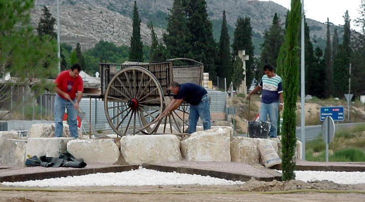 La estatua del zapatero sustituirá en breve al carro de la rotonda de la carretera de Cañada