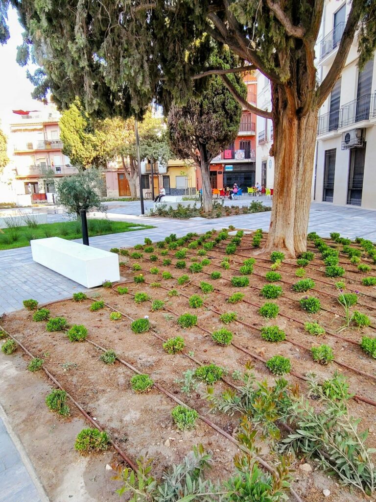 Con un presupuesto de alrededor de un millón de euros, financiado casi al 50% entre el ayuntamiento y la Diputación de Alicante, la superficie de actuación ha sido de aproximadamente 5.000 metros cuadrados y se ha incrementado la zona ajardinada de la plaza y su entorno. En concreto, se cuenta con más de 700 metros de zona verde, así como 51 nuevos árboles –algunos ornamentales, como los olivos, y otros de mayor porte para dar sombra en unos años– y más de 500 plantas aromáticas.