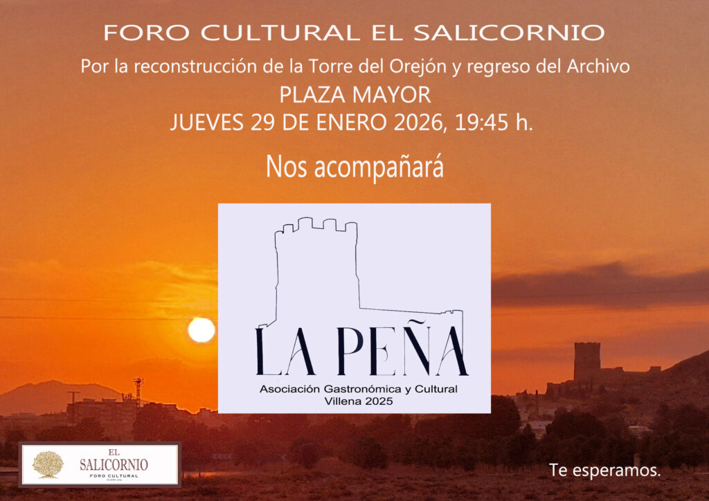 Os invitamos al encuentro festivo popular para reivindicar al Ayuntamiento la construcción de la torre con su Orejón, y que vuelva el Archivo Municipal. En esta ocasión nos acompañará la Asociación Gastronómica y Cultural La Peña.