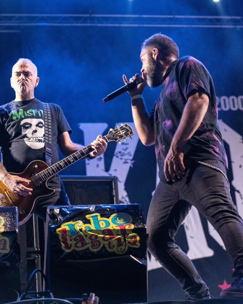 El ska de los villeneros dio paso a otra buena tanda de punk-rock, en este caso madrileño, de manos de dos de las bandas más consolidadas y reconocidas de la escena, Envidia Kotxina y Kaos Urbano, con tres décadas de carrera a cuestas en ambos casos, también para La Fuga, que tomó el testigo regalando a los asistentes un repaso a su extensa y sobresaliente trayectoria, incluyendo clásicos del rock and roll nacional como Buscando en la Basura o Por Verte Sonreír.
