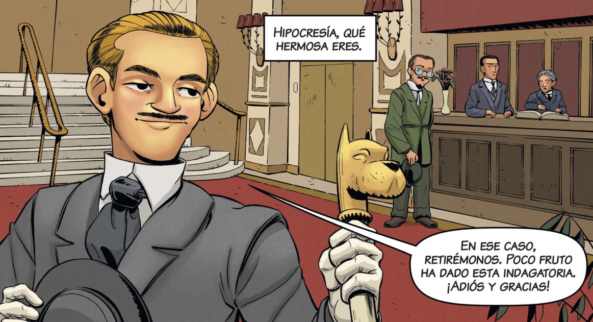 Sin más dilación, y como siempre en orden cronológico según la fecha de publicación del texto original, paso a destacar que siempre es una grata noticia cuando la historieta española contemporánea se fija en los clásicos de la literatura nacional. Este es el caso de La gota de sangre, el cómic que el guionista Ricardo Vilbor (Objetivo Hedy Lamarr) y la dibujante Ángela Curro han dedicado a adaptar el extenso relato homónimo de Emilia Pardo Bazán, que vio la luz en 1911 para ser después olvidado durante décadas -como el resto de la narrativa breve de la autora, en beneficio de sus obras mayores Los pazos de Ulloa y La madre naturaleza-, y recuperado desde hace un tiempo como el germen de la narrativa policíaca autóctona como los relatos de Poe protagonizados por Auguste Dupin lo son respecto de la correspondiente ficción de tradición anglosajona. Y es que estamos ante una suerte de novela de detectives ambientada en el Madrid de los años veinte del siglo pasado; cuyo protagonista, Ignacio Selva, es un joven aristócrata que, aburrido por el tedio de una vida acomodada, decide investigar un asesinato del que él mismo se ha convertido en el principal sospechoso para las fuerzas del orden. Así pues, estamos ante un tebeo que se lee con sumo agrado y que, esperemos, acabe proliferando en las bibliotecas de colegios e institutos de nuestra geografía para que -teniendo en cuenta además el suculento apartado de material extra que incluye- se reivindique al fin la figura de Pardo Bazán más allá del costumbrismo decimonónico.