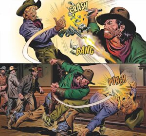 También es un claro ejemplo de literatura de género, o podríamos decir de géneros en plural, la ingente producción de Robert E. Howard, que ha pasado a la historia de la cultura pop como el padre de Conan el cimmerio, pero que también creó a personajes afines como Kull o Solomon Kane; además de escribir relatos pertenecientes a otros géneros como el terror (recordemos “Pigeons from Hell”, que también dio pie a una interesante adaptación en viñetas) o el western. A este último pertenece “Santuario de buitres”, un cuento publicado en su versión original en 1936 y reconvertido ahora en novela gráfica por obra y gracia del guionista Ángel García Nieto y el dibujante Benito Gallego: el primero elabora un relato en el que la información que se le proporciona al lector se va dosificando con gran oficio, generando un incremento paulatino en el interés de aquel durante la lectura; por su parte, Gallego se muestra como un discípulo muy aventajado del maestro John Buscema, que recordemos fue quien (al menos a mi parecer, y no me olvido ni de Neal Adams ni de Barry Windsor-Smith) le dio al mencionado Conan su versión definitiva en unos cómics publicados por Marvel en los años setenta; y dota de gran fuerza y dinamismo a todas y cada una de las planchas, destacando las figuras humanas y los grandes espacios abiertos por igual. Gracias a todo ello, para los amantes de las clásicas historietas de aventuras o géneros afines la lectura de Santuario de buitres resulta una verdadera gozada de principio a fin. Por cierto: si leen esto pronto, igual llego a tiempo de avisarles de que mañana sábado a las doce y media se presentará esta obra en la Casa del Libro de Alicante con la presencia de su dibujante, que dedicará ejemplares a quienes así lo deseen. No se lo pierdan.