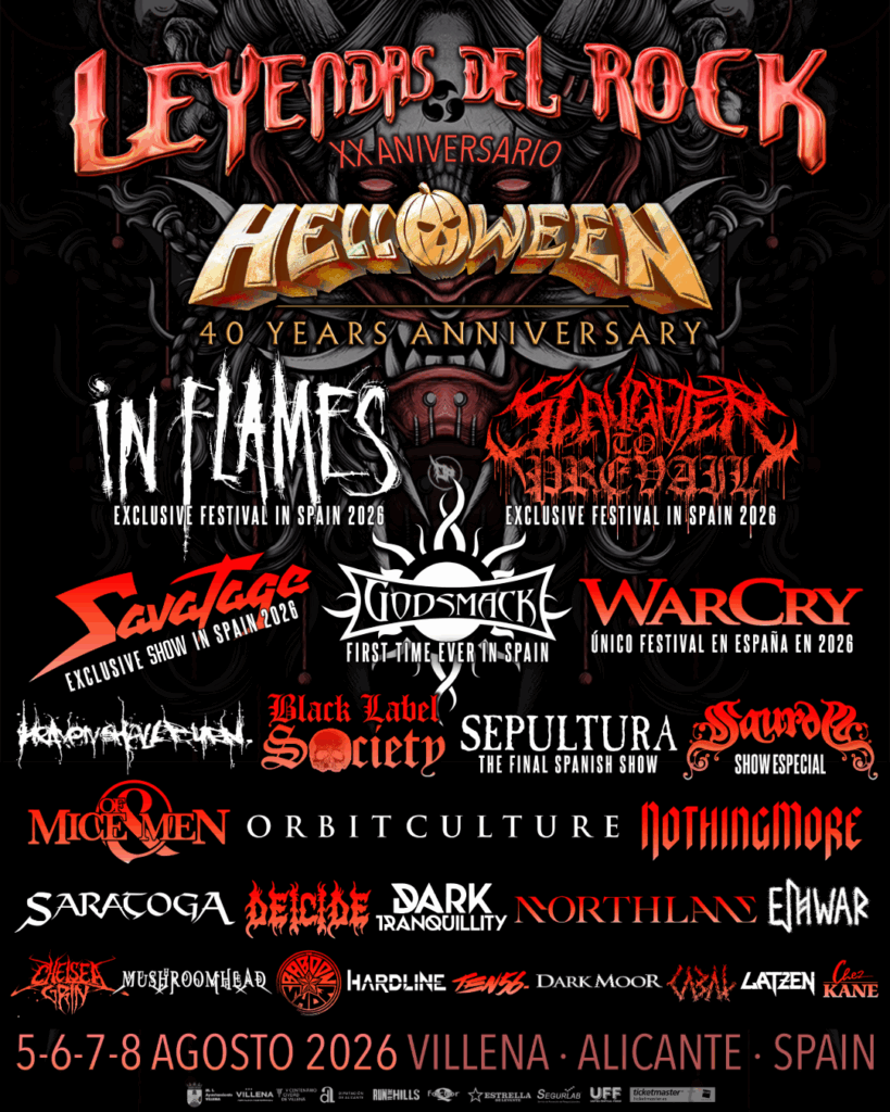 Leyendas del Rock sigue preparando con fuerza su XX aniversario, a celebrar los días 5, 6, 7 y 8 de agosto de 2026 en el Polideportivo de Villena. Al imponente cartel que ya hay avanzado, con Helloween, In Flames, Slaughter To Prevail, Savatage, Godsmack, Warcry, Black Label Society, Sepultura y más grupos de variados estilos, se suman los suecos Orbit Culture, el futuro mundial del heavy metal, Saurom, folk rock andaluz e icono del Leyendas, así como Northlane, The Baboon Show, Saratoga, Chelsea Grin, Ten56. y Cabal.