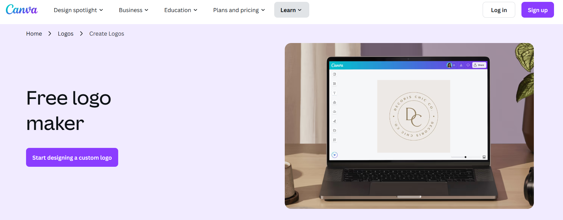 Canva es una plataforma que todos conocemos por su versatilidad en el diseño. Su creador de logotipos es fácil de usar, aunque depende bastante de plantillas prediseñadas.