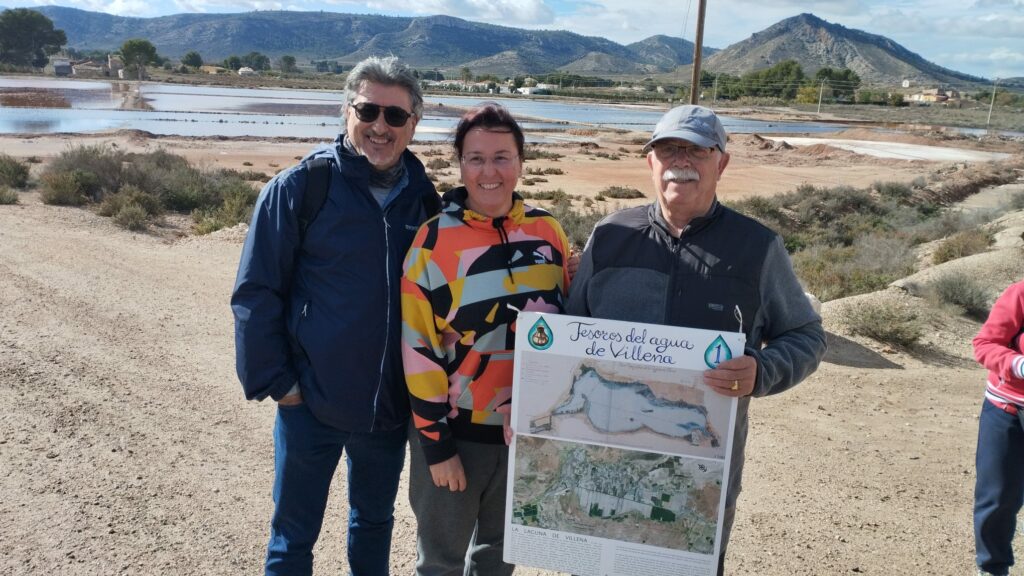 Después del refrigerio tomado en los alrededores de la ermita de San Bartolomé, el grupo entró en las dependencias del Salero Penalva, donde conoció las oportunas explicaciones de Fernando Ríos, explicando la geología del terreno y ofreciendo retazos históricos de la Laguna de Villena; Pepe Marco Hernández, quien habló, entre otras cuestiones, de las norias de extracción de las aguas para el buen funcionamiento de las salinas y, finalmente, Rosa María Martínez Espinosa, profesora de Bioquímica y Vicerrectora de Relaciones Internacionales y Cooperación para el Desarrollo de la Universidad de Alicante, que nos adentró en las últimas investigaciones científicas de la vida de los microorganismos salinos que muestran grandes esperanzas en aplicaciones médicas.
