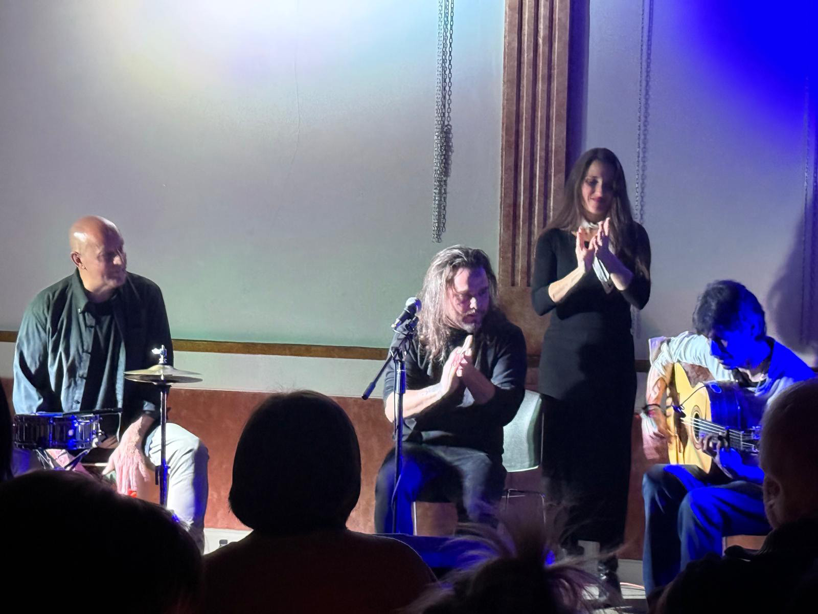 María “La Trigo” estuvo acompañada por el guitarrista Luis Dávila, que sorprendió por su virtuosismo y sensibilidad, aportando matices y profundidad a cada interpretación. A la percusión, Tony Prats “Pelao” volvió a demostrar su dominio técnico, destacando por la variedad de instrumentos empleados durante el recital y su capacidad para sostener el pulso rítmico con precisión y creatividad.