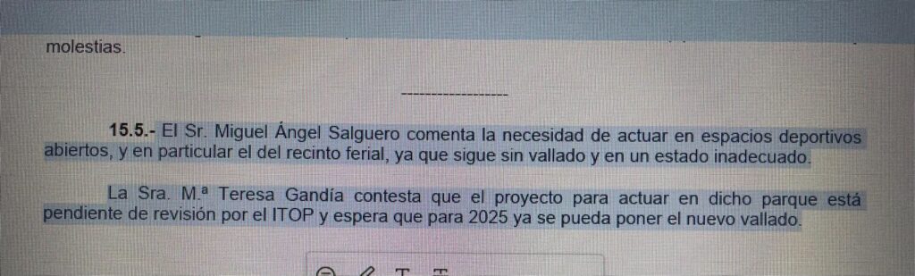 Desde el PP recuerdan que esta situación no es nueva ni inesperada, ya que en enero del año 2023 advirtieron públicamente del mal estado de las pistas polideportivas del recinto ferial y reclamaron su reparación.