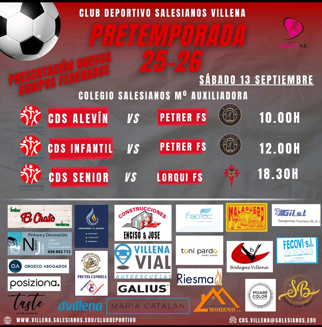 A las 18:30h el CD Salesianos construcciones Enciso y Jose presentará a los jugadores que está campaña formarán el equipo y tras ello jugará un partido amistoso contra Lorquí FS, un rival de categoría superior de la región de Murcia.
