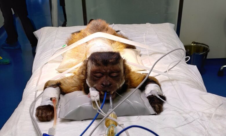 Capitán, un mono capuchino, ha sido operado de urgencia en una intervención nunca llevada a cabo con un primate de su tamaño y especie