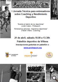 Los profesores serán Fabián Villena, licenciado en Psicología y experto en Coaching ( www.fabianvillena.com) y Julián Calero, presidente de Profesport y licenciado en Ciencias de la Actividad Física y del Deporte. Los talleres teórico-prácticos de esta I Jornada Técnica para entrenadores se fundamentarán en una premisa clave del rendimiento deportivo: el entrenador entendido como verdadero Coach por su influencia directa en el rendimiento. Explota el talento de tus deportistas pretenderá analizar qué elementos internos o externos del entrenamiento son esenciales para conseguir resultados. Entrenamos personas, mejoramos deportistas pretenderá obtener herramientas de aplicación para la mejora tanto de deportistas individuales como de grupos, conocer aspectos fundamentales para descubrir qué se desea verdaderamente y cómo conseguirlo, así como mejorar la motivación y la proactividad en entrenadores, técnicos, monitores y deportistas.