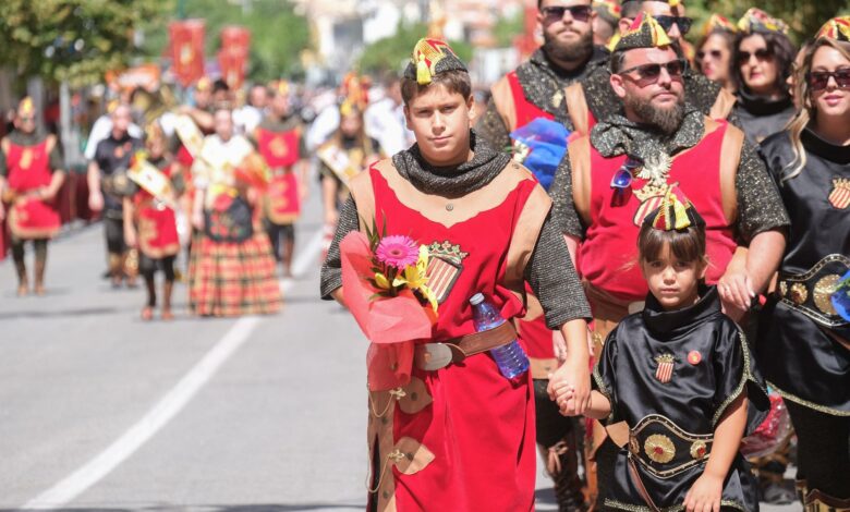 A las 12:00 horas. OFRENDA a la Patrona de la Ciudad de Villena, Ntra. Sra. María de las Virtudes, y presentación de infantes por las diferentes comparsas, desfilando en ellas sus respectivos Cargos Festeros y Bandas de Música, siguiendo la Junta Central de Fiestas, Regidoras, Corporación Municipal y Banda Municipal de Música de Villena. El recorrido se iniciará en Avda. Constitución, intersección con las calles San Isidro y Coronel Selva; recorrerá la Avda. Constitución, Joaquín María López, Corredera, Párroco Azorín y Marqués de Villores, entrando en la Iglesia de Santiago Apóstol por la puerta principal y saliendo por la lateral a la Plaza de Santiago. En este acto se presentarán, a la Patrona de Villena, los niños de hasta tres años participantes en la ofrenda.