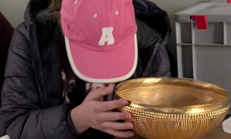 El punto álgido de la visita fue el encuentro con el Tesoro de Villena. Los estudiantes pudieron apreciar con detenimiento la calidad de las piezas mediante réplicas de cuatro cuencos, cuatro pulseras y una botella.