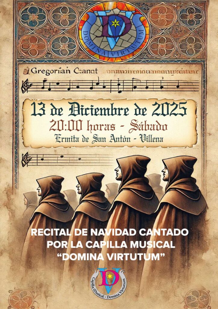 La ermita de San Antón acogerá este sábado 13 de diciembre, a las 20:00 horas, un recital navideño a cargo de la Capilla Musical Domina Virtutum, una formación vocal villenense que destaca por su sensibilidad interpretativa y la creación de ambientes íntimos y emotivos.