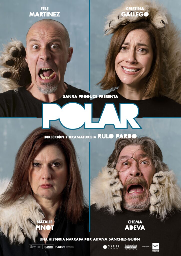 Estamos ante una comedia trágica formada por tres historias unidas por un accidente ecológico. Hace tiempo que su director Rulo Pardo aborda en sus piezas argumentos que hablan de una forma u otra del cambio climático. Y en “Polar” lo hace de forma más directa. Que una osa polar destroce una comedia es la denuncia perfecta sobre estos cambios. Un animal así es tan bello y hermoso como fiero y temible. La huella humana está en todo el planeta. Esta comedia nos recuerda que la tierra no nos pertenece y que el hambre no atiende a fronteras, solo al olor de la carne y las presas que hay dentro de sus muros, explica su autor.