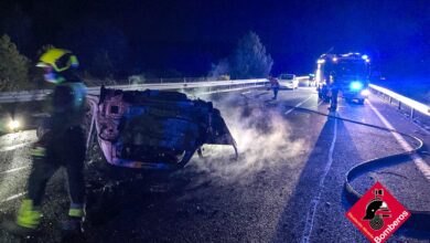 Un vehículo vuelca y se incendia tras una colisión por alcance en Biar
