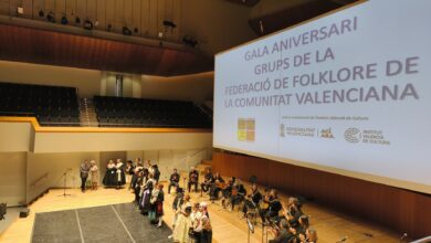 El Grupo de Danzas de Villena emociona en el Palau de la Música de Valencia en la gala de la Federación de Folclore