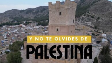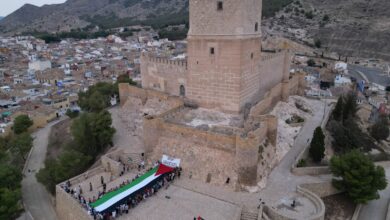 Stop genocidio en Gaza: espectacular imagen reivindicativa desde el Castillo de la Atalaya de Villena