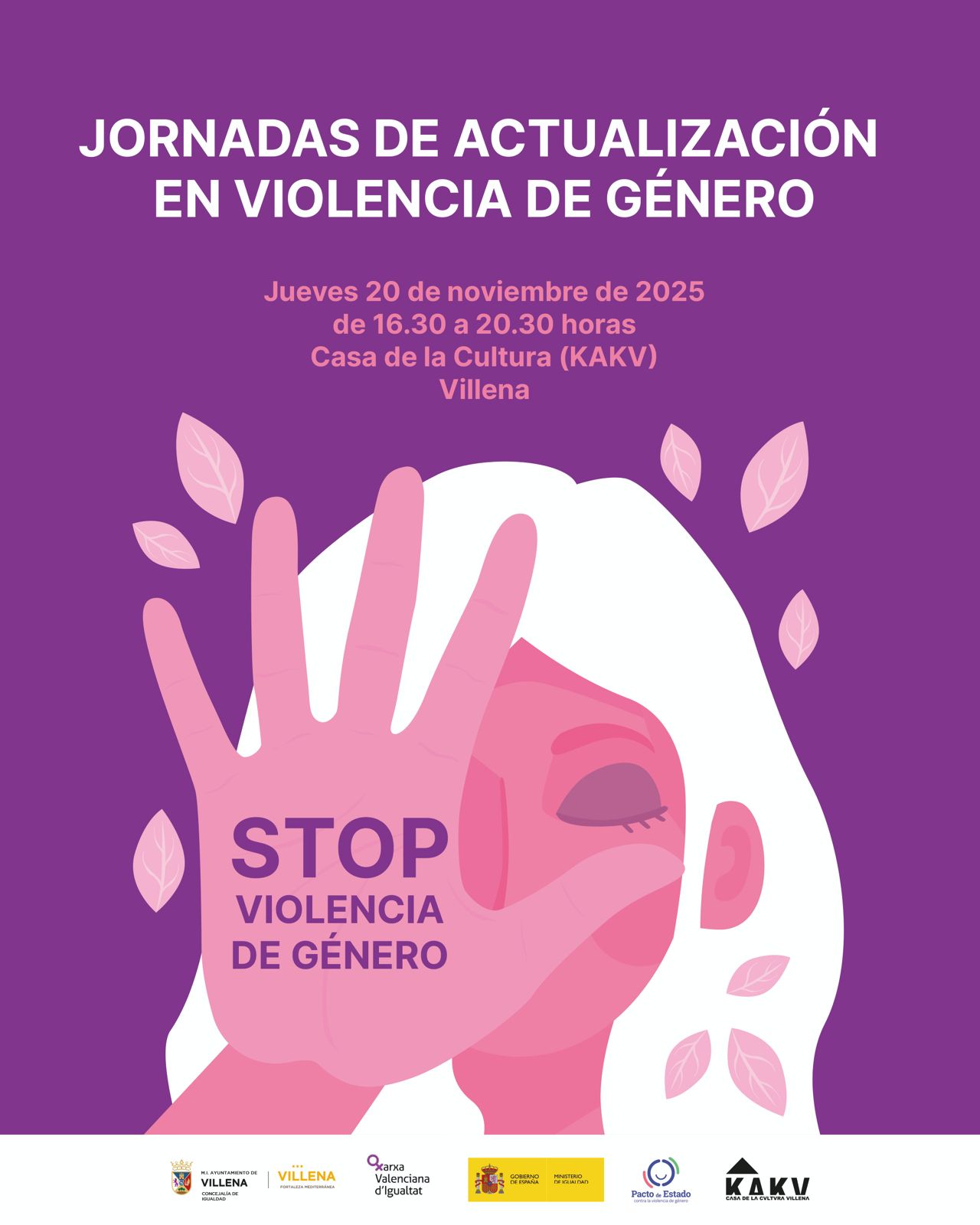 En el mismo marco, el jueves, 20 de noviembre, a las 16:30 horas, la Casa de Cultura de Villena acogerá las Jornadas de actualización en violencia de género.