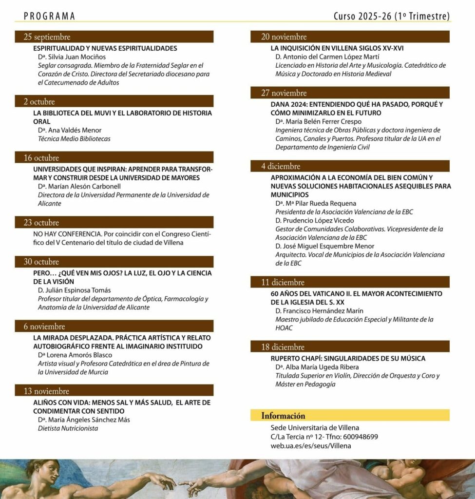 La concejal de Cultura anima a la ciudadanía a disfrutar de esta nueva programación y apostaba por “seguir apoyando e impulsando actividades tan consolidadas como esta, que tienen un impacto muy positivo en la vida de los ciudadanos”, por lo que agradecía a la Sede y a Ricardo Celiberti “su continua dedicación a la comunidad” y reafirmaba el compromiso del equipo de gobierno por “fomentar el conocimiento, la cultura y el interés por el aprendizaje en Villena y su entorno".