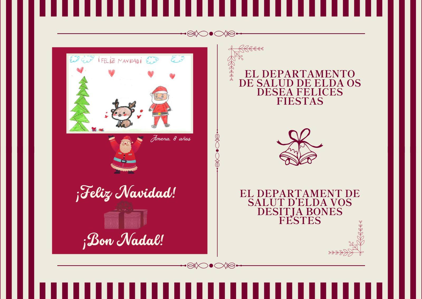 La pequeña Jimena, de 8 años y vecina de Villena, ha sido la ganadora del concurso infantil de dibujos navideños, un certamen que ha llenado de color, ilusión y espíritu navideño las instalaciones del Hospital durante estas fechas.